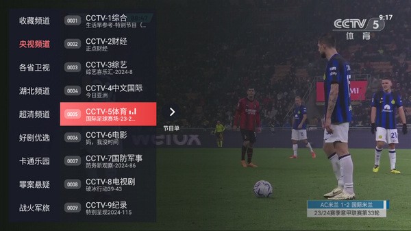 高清转播: 提供CCTV、卫视台全程高清转播。
