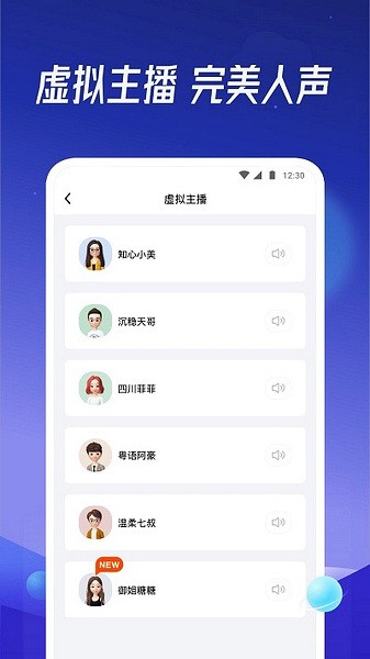 软件上拥有4种不同AI声音,包含男女普通话和四川话,可以根据自己的喜好进行选择。