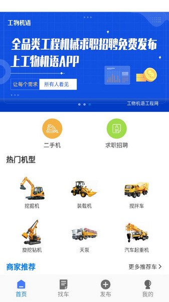 此外,工物机语app还提供了包括求职招聘、找车和发布信息等在内的多项功能,可以非常好的满足用户们的使用需求,工程设备的型号更是齐全,还有价格实惠的二手机可供大家浏览。作为一款相当好用的全品类工厂机械平台,工物机语同时也能够为业内人士提供沟通的桥梁,方便大家交流需求。