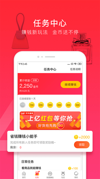 我用了之后发现这个APP真的挺贴心的,每天都会有新的优惠活动,而且完成一些小任务还能赚金币,金币攒多了还能换东西或者抵现金用,这种“边玩边赚钱”的感觉真的超赞。另外,它还有分享功能,如果我把商品链接发给朋友,别人买的话我还能拿返利,这也太划算了。