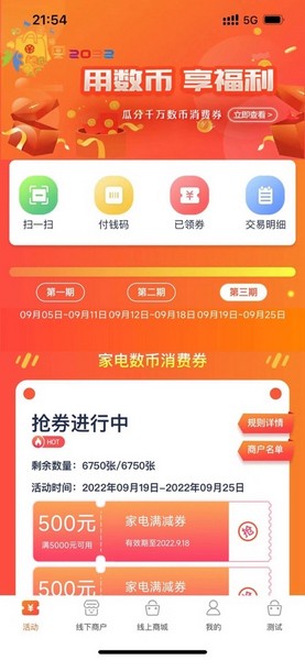 3、第一步需确认已在“数字人民币”APP拥有至少一个实名(三类、二类、或一类)数字人民币钱包。第二步打开“雄安新消费”APP完成手机号登录、实名制核验以及钱包快付功能开通。第三步在活动开放期间登录“雄安新消费”APP活动界面,领取对应场景的数字人民币满减消费券。