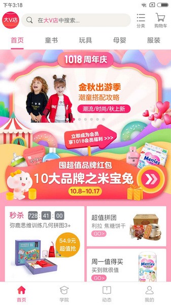 大V店app是由北京果敢时代科技有限公司专门为妈妈群体打造的一款母婴产品购物软件,通过会员制为妈妈们提供购物、社交、教育、生活等多维度的服务,让妈妈们在学习交流实践的过程中实现自我成长,成就自我价值。大V店app中有着大量全球精选的母婴童书产品,大家可以购买适合自己的产品来学习。而且软件内还有非常多的妈妈在社群中分享自己带娃的经验和技巧,大家在这里可以认识更多的优秀妈妈,和他们一起学习,一起努力做更好的妈妈。
