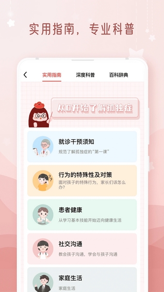 2、认识自闭症,了解自闭症的患病原因、患病症状等,方便进行健康自测;