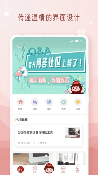 枣孖是一款专为心智障碍群体设计的软件,提供了很多方便的服务,比如知识百科、政策查询、机构查找等等。软件里还有心理咨询服务,咨询师24小时在线,随时可以预约;另外还能认识自闭症,了解它的原因和症状,帮助健康自测。附近医院机构也能直接查到,很方便看诊。软件里还有各种话题可以互动讨论,结交新朋友,分享育儿经验也很方便。