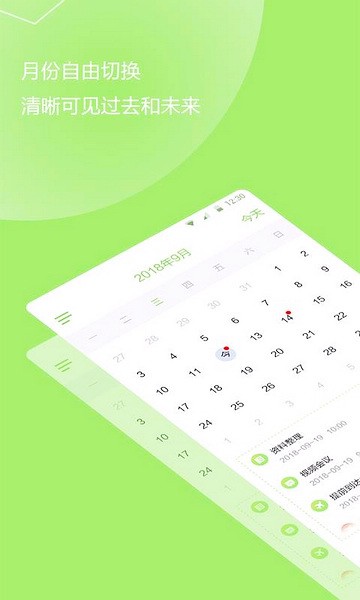 2、在日历中,自由切换月份,清晰可见过去和未来安排;