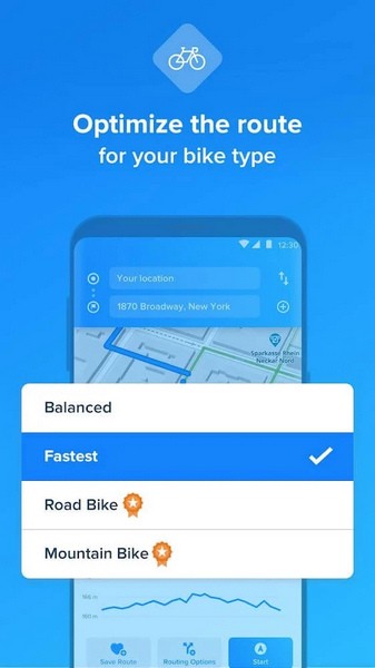 自行车类型路线优化: 优化您的公路自行车或山地车的路线。