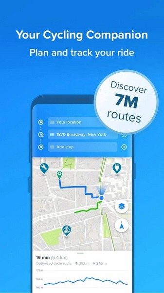 bikemap 破解版是一款为骑行爱好者准备的导航出行软件。在这款软件中用户可以使用GPS系统定位自己的地理位置,并选择目的地来生成导航路线,根据系统指引前往目标点。同时软件会开启记录仪来记录用户骑行时的各项数据,还会将数据保存到用户的个人档案中,可以随时浏览查看,本页面提供高级版的破解版安装包。