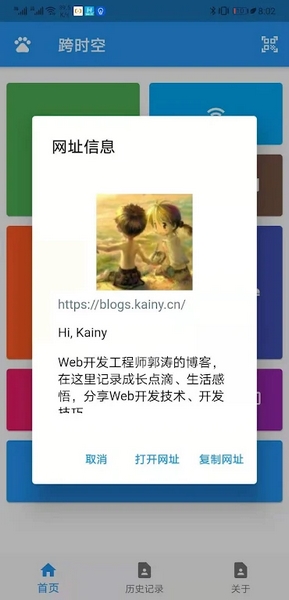 跨时空app是一款极致简洁的浏览器手机软件,简单到甚至没有地址栏和搜索栏,比起常用的浏览器来说,它更像是一个快速打开页面的工具。它打开网址的方式有三种,分别是扫描二维码、读取剪贴板网址以及外协议链接。并且还可以将多个页面的内容都展现在一个屏幕中,通过这个特性我们还可以将各地的健康码都添加进来,这样将可以实现一键打开任意一个健康码了。