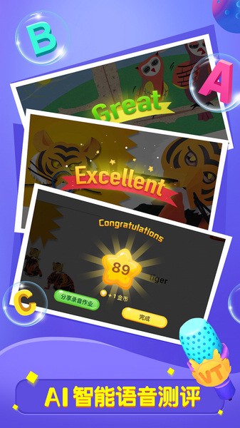 特别是它的语音测评功能,能把发音不标准的地方标红,这样孩子就能有针对性地改进自己的发音了。再加上有真人标准的美式英语发音,还能进行对话训练,实时纠正错误,感觉挺科学的。总的来说,这款App既能培养孩子的学习兴趣,又能有效提升他们的英语水平,是个很实用的学习工具。