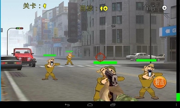 2、游戏提供了大量关卡,你需要用有限的生命杀死更多鬼子,射击鬼子不同部位得分不一样;