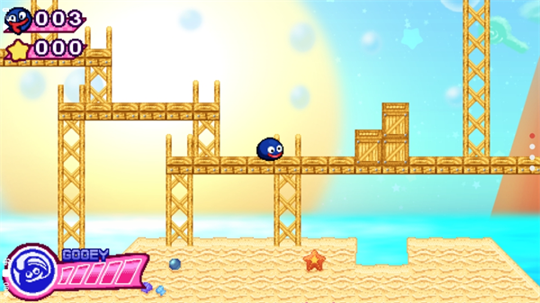 3、进入游戏如图,玩家需操纵卡比跳跃闯关;