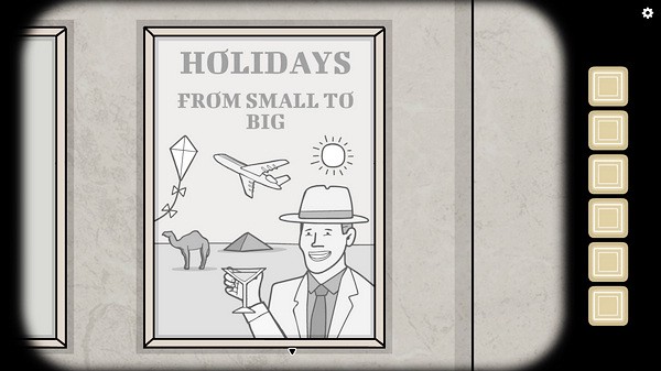 3、回到母女身边,向右切换场景,点击墙上的海报,看到提示“从小到大”,我们按照这个顺序依次点击海报中的物体,完成后在海报左上角得到一把钥匙。