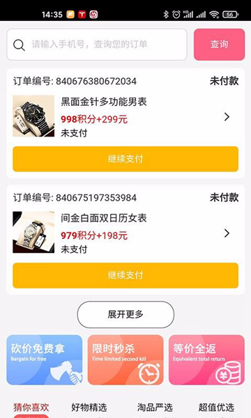 第二步:在淘品优选商城的【我的订单】页面顶部,输入自己的手机号,记得要输入下单时填写的手机号,然后点击查询,如下图所示