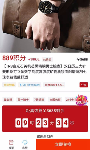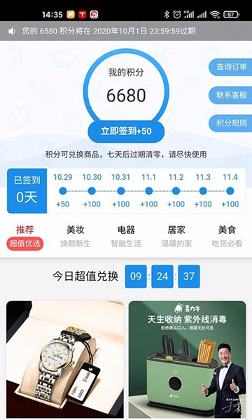 1、积分换购:每天登录做任务赚积分,直接换购超值好物;