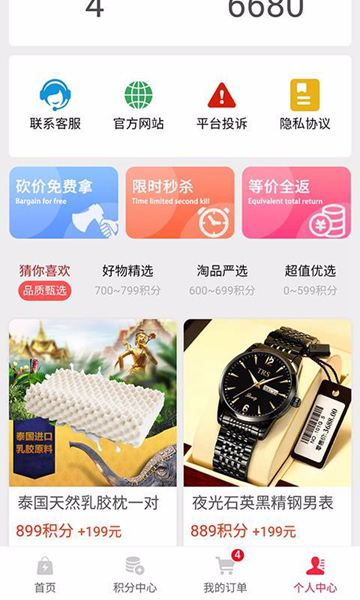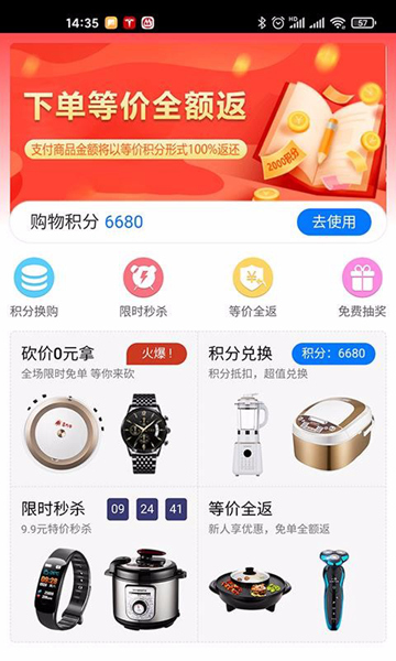 2、等价全返:精选全额返商品,购买后直接全额返还积分;