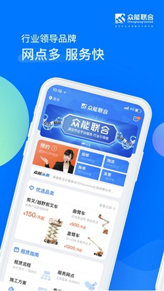 众能联合app是一款专门解决高空作业设备租赁问题的神器,操作简单又方便,轻轻一点就能找到合适的工程车,再也不用为设备不足发愁啦!他们的服务特别快,全国网点多,随时可以调度车辆,而且价格也很实惠。最让我觉得靠谱的是他们7×24小时客服在线,无论啥时候有问题都能及时解决,关键是维修人员15分钟就能到现场,这速度简直太赞了!