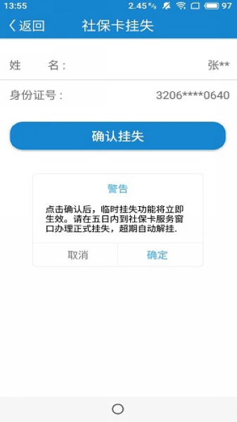 5、通过平台可以立即挂失社保卡,并且还能在平台一键办理;