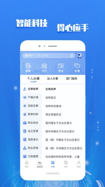 渝快办app软件集成了证照办理、预约挂号、渝康码查询、结婚预约、公积金查询、社保查询等多种实用功能,为用户提供便捷、高效、智能的生活服务;