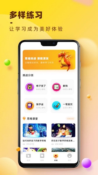 这个app的功能也很多样化,不仅能学同步课程,还能随时随地趣味学习。比如英语跟读练口语,挺方便好用的;还有思维挑战、一笔画完训练脑力、数独逻辑题这些,既锻炼了孩子的各种能力,又增加了学习乐趣。特别是猜字谜和绘本馆功能,寓教于乐,孩子在玩中学到了不少东西。