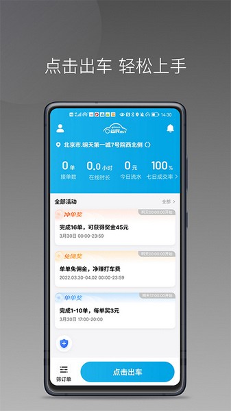 接单畅通:清晰播报用户上下车地点,抢单后马上致电,沟通无障碍。