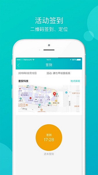 活动签到:二维码签到定位。