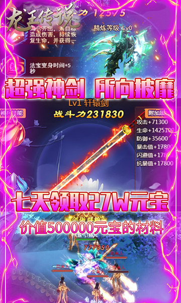 龙王传说-无限送元宝是一款国风写实2.5D的仙侠RPG产品,手持3把光武战斗的游戏。新版本新福利强势来袭登录就送GM2,58888元宝,1000次抽奖,1800元充值卡,1元宝领取总价值5000RMB的VIP1-VIP25大礼包。仙魔灵3种族切换。各类法宝多重变身,脚踩法轮、背装翅膀、怀抱美人。在这里你将转世到虚构的修真世界展开一段全新里程,游戏内用现代时尚的观念全新演绎神兵。