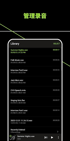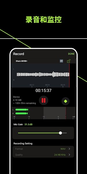 • 使用内置麦克风录制高品质非压缩 WAV 音频