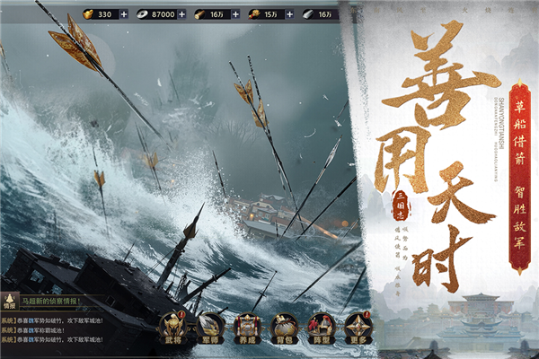 3、多样计策:军师技、羁绊技、情义技,各种计策技能让战场形势变化多端,带给你无穷的策略乐趣。