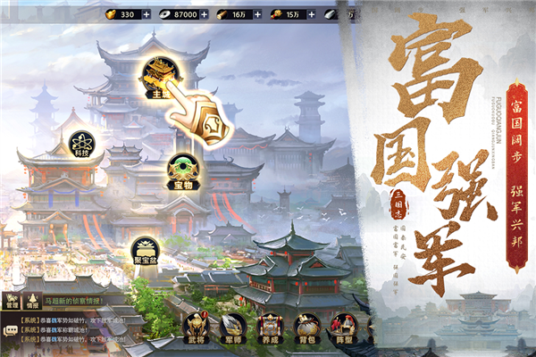 三国之旅左上角的关卡挑战,还有左下角的战利品领取。关卡挑战能给你带来经验、战利品,平时没事做的时候可以开启自动挂着;战利品存了6个小时就会满,记得要早点领取哦。还有右边的敌将入侵和血战群雄,也算是每天的一个打卡任务。敌将入侵一般都选择星级挑战,每天当任务一样把次数刷完就行。