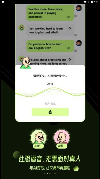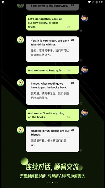 我们的应用程序还集成了翻译与跟读功能,允许你无缝地将任何对话翻译成所需的语言。不仅扩大了词汇量、还能获得地道口语表达,应用程序都帮你完美解决。这意味着你可以专注于真正重要的事情——练习你的口语技巧——而不用担心语言障碍或误解。