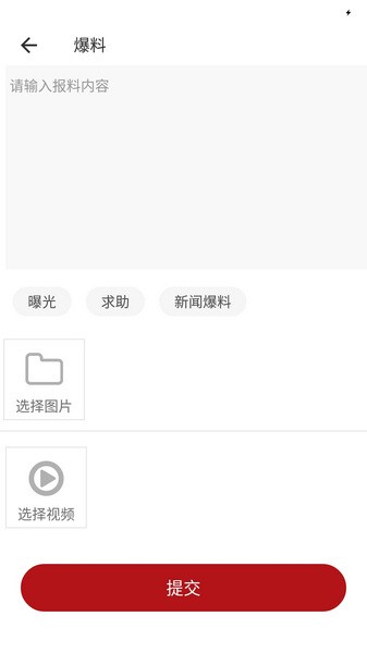 3、在【爆料】页面可以查看网友们的各种爆料,当然我们自己也可以爆料,只需要点击右下角的相机图标,然后填写好相关的信息,点击下方的提交即可;
