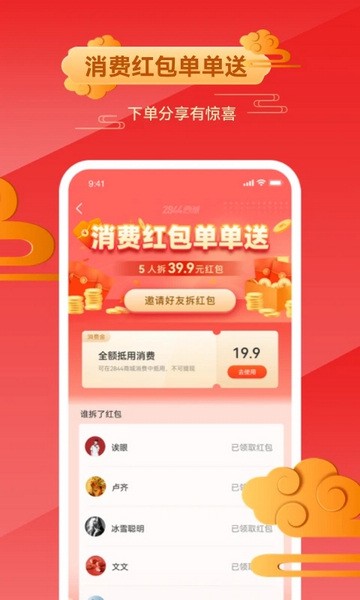 2844商城——你身边的本地正品折扣商城 2844商城全面升级,近百万款全品类商品,正品保障,全场折扣,上2844,一站购齐日用所需。 1.品类齐全 2844商城作为全品类的社交电商平台,目前拥有18个大类1万多个小类的商品,覆盖到生活的方方面面,男装女装、鞋靴箱包、内衣配饰、美妆护肤、个护清洁、钟表珠宝、手机数码、电脑办公、家用电器、食品生鲜、酒水饮料、母婴童装、玩具乐器、运动户外、家居厨卫、家具家装、宠物鲜花等,应有尽有,上2844选好货,轻松包邮到家。 2.全品抵扣 2844商城有严格的货源供应审核体系,确保每一件商品都来源于正规厂家,所售商品皆保障正品。融合多种销售渠道,省去中间环节,价格更低,全场商品均可享受折扣价,且会员可在全场折扣的基础上再次抵扣。 3.超值活动 2844商城超多精彩活动等你来,每日精选、限时秒杀、当季活动、新人专区、助农专区、年货专区等活动,更有消费拆红包、礼物送他人等新玩法,单单有惊喜,购物更快乐。 4.返消费金 商城惠民补贴10亿,上百款大礼包,丰富多样,购买任意一款礼包就送等额消费金并且成为店主。礼包低至99元,消费金可在商城内进行全品抵扣,真正实