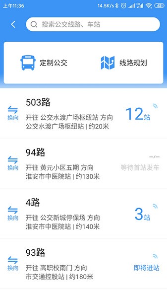 1、公交实时定位:公交实时定位是基于车辆GPS定位数据而开发的功能,便于乘客使用APP能够实时掌握车辆的定位,更加合理的规划自己的出行时间和线路。