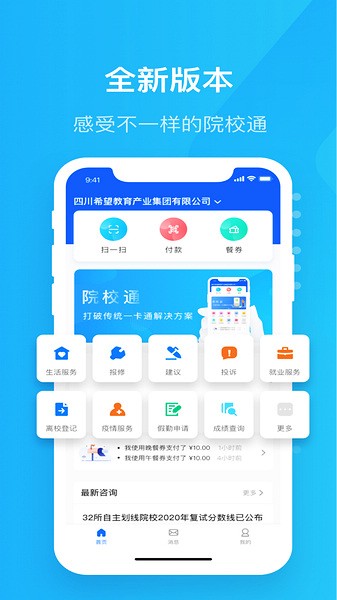 院校通APP是一款专为师生打造的校园神器,功能超级全面,简直像哆啦A梦的口袋,啥都有!比如在线充值水费、电费、饭卡,完全不用排队充值,动动手指就能搞定。要是宿舍东西坏了还能直接报修,维修人员会上门处理,省事多了!最让我喜欢的是扫码消费,一码走校园,消费记录随时查,付款超方便。