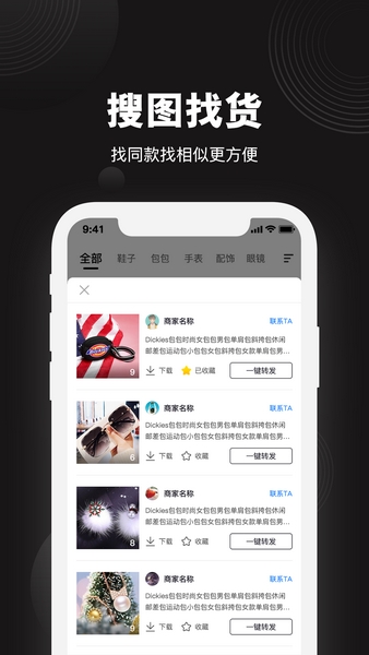 入驻商家自行发布商品,找货批发直接面向厂家,公开多种联系方式,无障碍直接沟通,点对点与商家联系,无任何服务费用,拒绝中间差价。