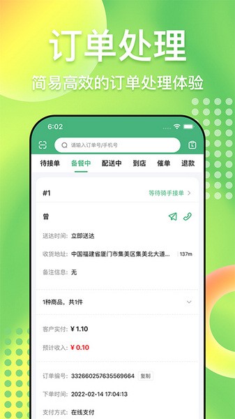 点击就能查看所有的外卖订单状态,用户可根据下单时间进行制作;
