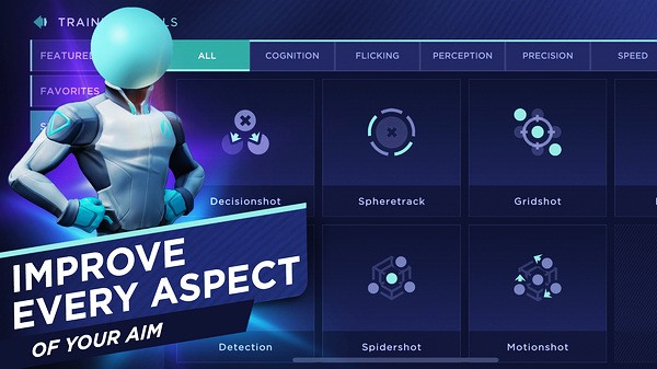 为了成为最强者而刻苦训练,并不意味着在这一过程中享受不到乐趣。Aim Lab 移动版提供了 15 个小游戏类型的任务(之后还会加入更多),这些小游戏都将专注于某几项在冲击排行榜第一名时必备的技术。训练并提升速度、命中率、反应时间、反应射击、快速反应、头部射击等各多项指标。