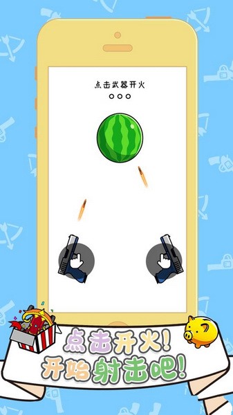 双枪王者游戏是一款简单又有趣的射击小游戏,玩家们点击屏幕就可以朝着掉落下来的水果开火。游戏玩法简单有趣,还有超多精彩的射击关卡能够为大家带来乐趣,帮忙赶走无聊。大家还可以升级自己的武器来获得更加强大的威力,更有草莓、西瓜和汉堡等多个不同的物品需要玩家们的解锁,超多有趣的道具奖励正等着为大家带来独特的游戏乐趣。