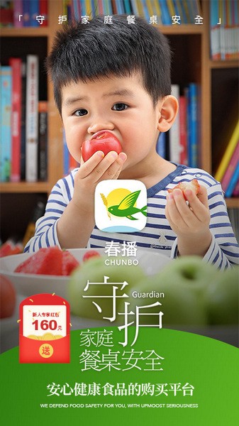 安心健康食品的购买平台,为中国家庭提供经过专业检测的安全、健康食品、食材及亲环境产品,涉及16大品类4000多种产品:来自春播农庄和良心守护大地生产者联盟的安心蔬菜、新鲜水果、肉禽蛋品,产源地直采的水产海鲜、安心乳品、面点烘焙、风味熟食、粮油副食,安心零食,国内外酒水、健康冲饮,品质亲环境用品及海外购(海外直邮)服务。