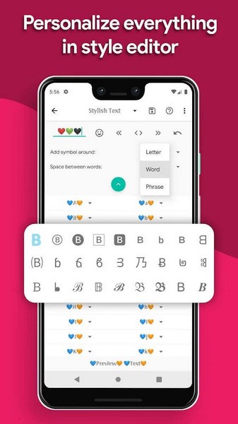 stylish text破解版是一款非常好用的字体美化软件,里面有很多好看的艺术字体和各种有趣的符号,比如下划线、几何图形等等。这个破解版解锁了高级功能,可以免费下载使用,而且操作很简单,不需要root就能用。我觉得挺方便的,适合喜欢聊天的朋友用来装饰文字,发给小伙伴们看看。