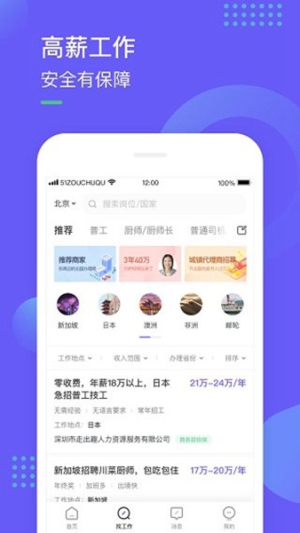 这款“走出趣”App是北京一家公司开发的国外求职神器,专为想去海外工作的小伙伴打造。它不仅提供各种高薪职位,还让整个找工作过程变得透明靠谱,不用再担心被坑。最棒的是,你可以通过这个平台找到世界各地的工作机会,一边赚钱一边还能去各国旅游打卡,简直是一举两得!