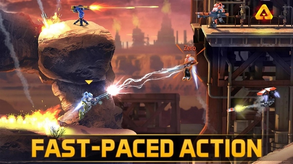 Armajet乍一看就是普通的横版射击,但其实它将经典快节奏玩法和MOBA元素结合起来,像是《火箭联盟》(赛车+足球)、或者《天生战狂》(ACT+MOBA)。玩家可以选择红色或者蓝色阵营加入战斗,扮演一名武装机枪兵,使用不同的武器消灭敌人,通过赢得比赛获取金币奖励,升级自身的武器装备,投入到更刺激的战斗之中。