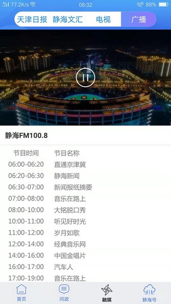 融媒,包含《天津日报》、《静海文汇》、“电视”以及“广播”等子栏目;