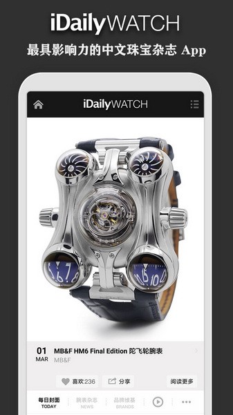 1、手机杂志阅读软件,专为腕表打造,每天实时更新最新资讯。