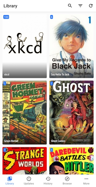 Tachiyomi是一款开源免费的漫画软件,本身并不包含任何的资源,但厉害的是它支持安装很多插件,其中就包含了各个图源,因此用户可以在这里看到非常多的漫画,而且全部免费。软件中的内容都是很纯粹的,包括界面也是非常干净,全部都是漫画作品相关的内容。此外也有历史记录,收藏书架,漫画更新提醒等功能,且有多项隐私相关的设定,让用户可以随心所欲地浏览喜欢的作品。