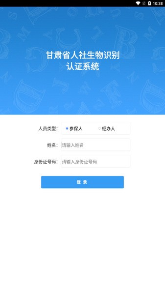 1、用户下载甘肃人社认证app后,在手机上安装并打开,进入页面后以参保人的身份输入正确的姓名及身份证号码,点击登录