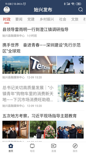 每天及时更新当天新闻,设置多个频道,频道设置细化清晰,保证让大家看到最新的新闻,不再错过始兴新闻!