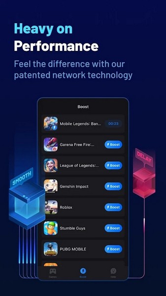 您可以提升所有主要的移动游戏,例如 Free Fire、PUBGM、Genshin 和 Mobile Legends,以及新的热门游戏,例如 Stumble Guys 和 Roblox。