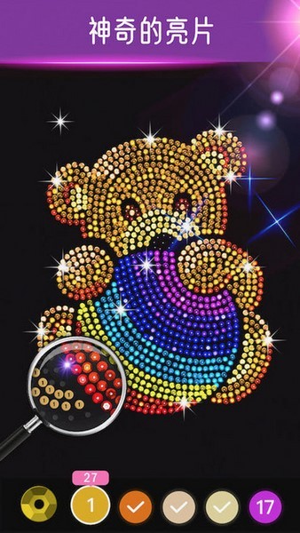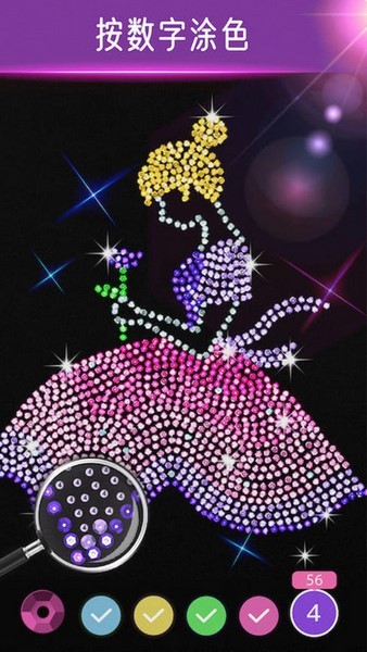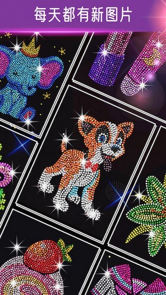3、有炫酷的的亮色系列,利用数字填色人人都能完好的钻石点缀游戏,多种图案任你加色。