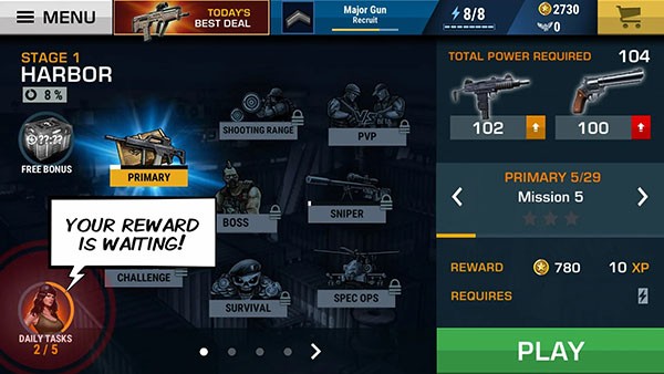 4、关卡任务谨慎挑选完成,根据主要目标条件制定全新计划完美应对挑战,还能发挥全部枪法技巧面对战场。